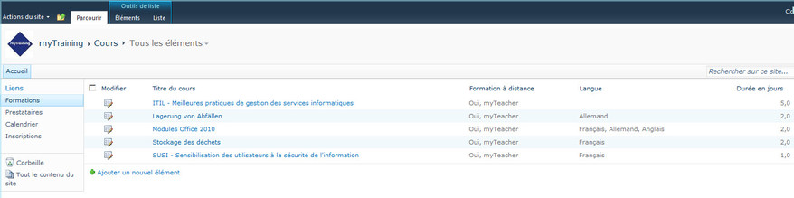 Développée en SharePoint 2010, MyTraining vous permet de gérer facilement et intuitivement les formations de vos collaborateurs de A à Z.