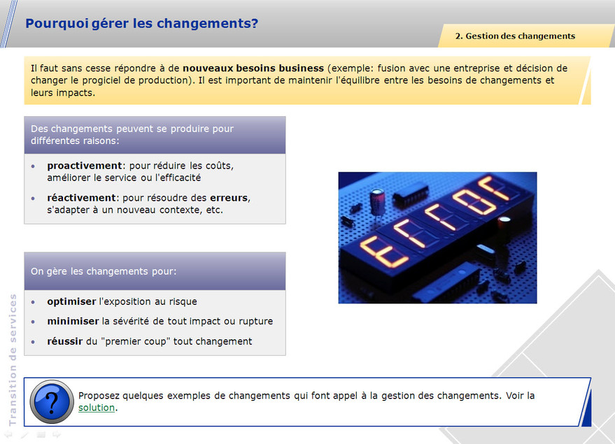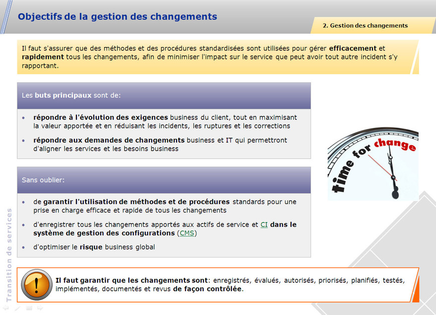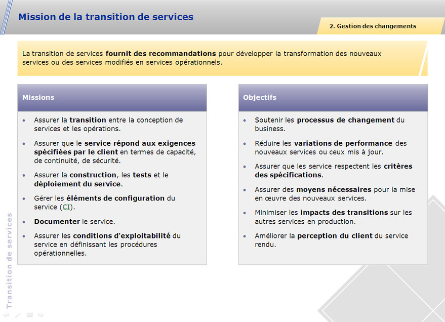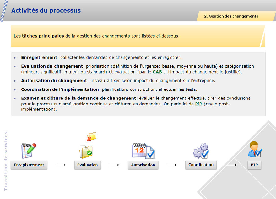Introduire la transition de services dans ITIL® et passer en revue l'ensemble des processus associés.
