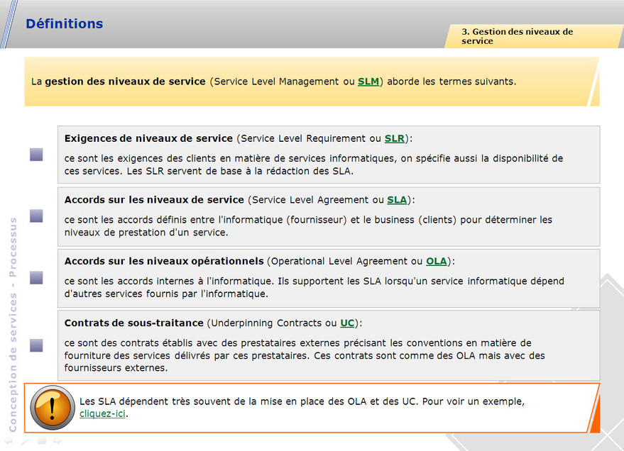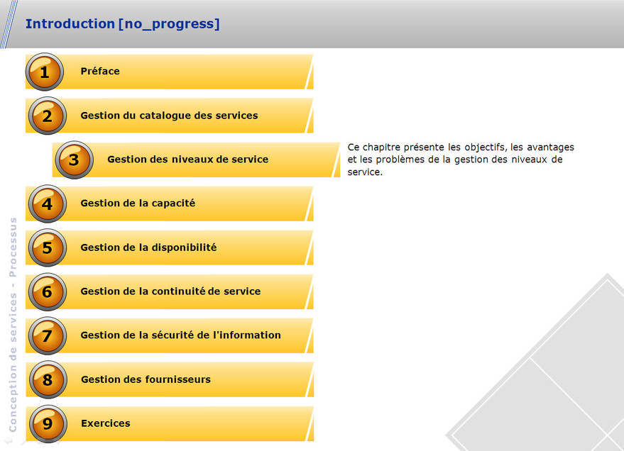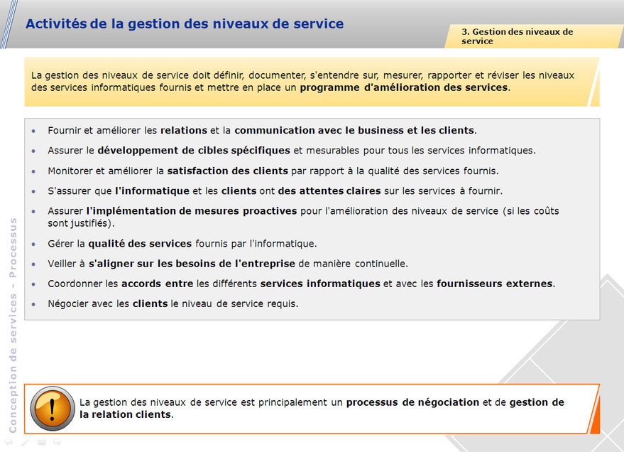 Passer en revue l'ensemble des processus du chapitre conception des services.