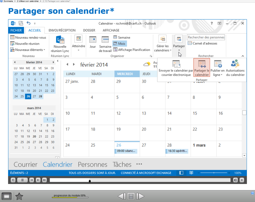 - Accéder au calendrier d'un autre utilisateur.