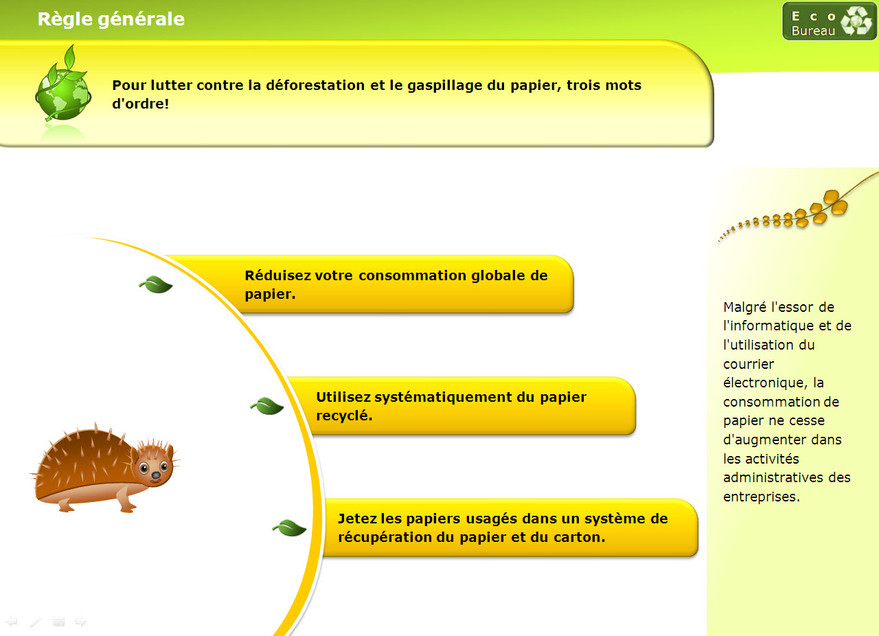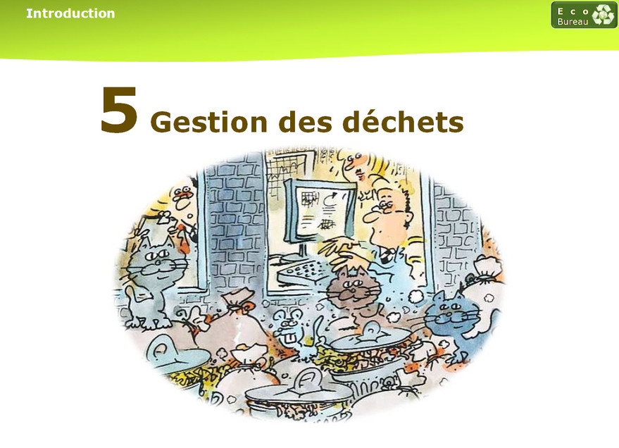 A travers les 5 thèmes traités dans ce module, prenez conscience des gestes quotidiens à mettre en œuvre au bureau pour protéger l'environnement.