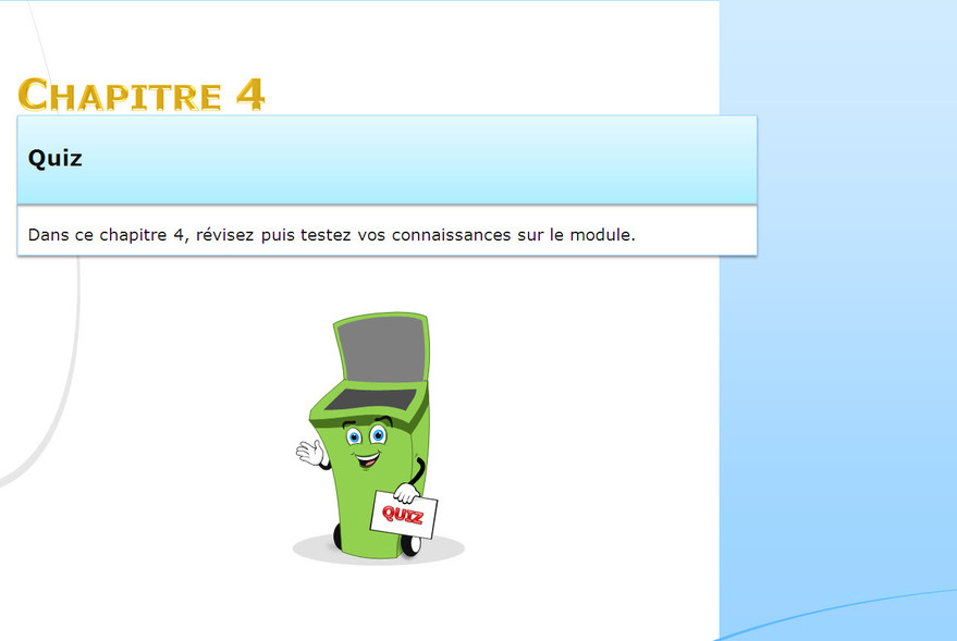 - Chapitre 4: Quiz (révisez puis testez vos connaissances sur le module)